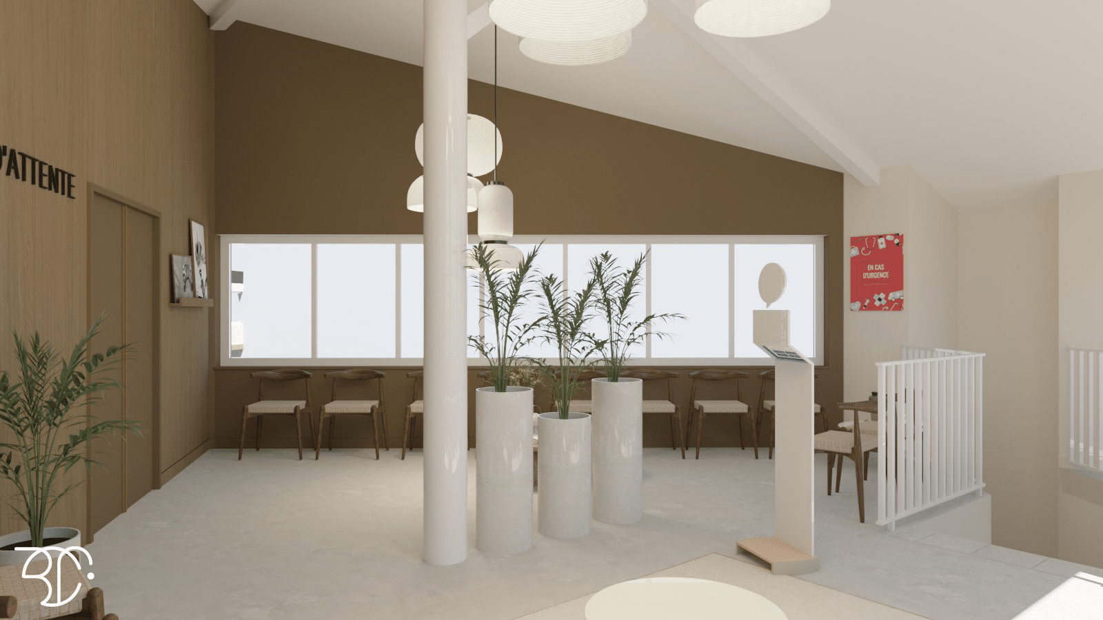 Salle d'attente avec borne d'accueil multimédia