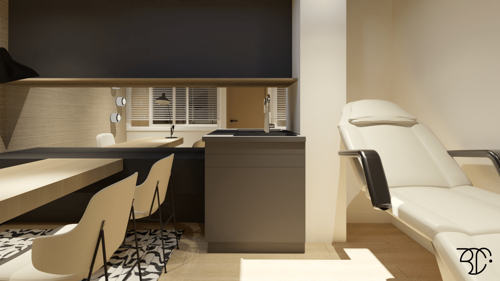 Les aménagements intérieurs ont été créés par l’architecte d’intérieur Constance Berthier, avec qui vous pourrez personnaliser votre bureau ou cabinet selon vos envies et besoins spécifiques (2h de rendez-vous conseil avec l’architecte sont inclus dans le prix).